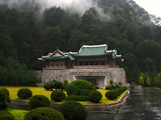 妙香山麓的國(guó)際友誼館,由金日成國(guó)際友誼館(本館)和金正日國(guó)際友誼館(別館)組成,前者比后者大,均為多層大型朝式建筑(與中國(guó)的樓閣相似),遠(yuǎn)看似木結(jié)構(gòu),其實(shí)為混凝土建筑。金日成國(guó)際友誼館,始建于1974年,1978年8月28日開(kāi)館,展覽館為6層樓房,建筑高43.3米,總建筑面積為5萬(wàn)多平方米,190個(gè)房間。它的主要部分不是下圖中那外表的建筑物,而是開(kāi)鑿在其后的大山中的山洞部分。展覽館按大洲和國(guó)家陳列著世界一百七十多個(gè)國(guó)家的政黨、國(guó)家元首、社會(huì)界和政界人士向金日成贈(zèng)送的禮品,禮品達(dá)22萬(wàn)多件。