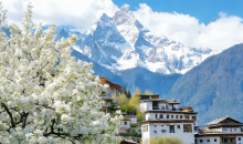 雪寶頂山終年積雪,山腰巖石嶙峋,溝壑縱橫,湖泊星羅棋布。較大的海子有108個(gè),尤為著稱的是四海:即像明鏡般的東南圓海,勢如城郭的西南方海,形似彎月的西北半圓海,宛如金字塔倒映的東北三角海。雪寶頂山麓花草遍布,灌木叢生,松柏參天。這時(shí)生長著大量的貝母、大黃、雪蓮等名貴藥材,同時(shí)也是青羊、山鹿、獐子等珍貴動(dòng)物棲息、繁衍的場所。