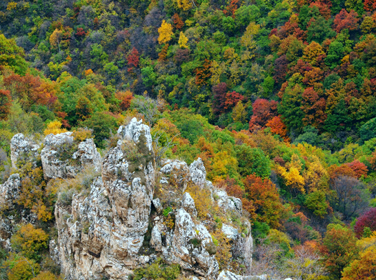 峽谷中,谷寬澗淺,如在盛夏時(shí)節(jié),陽光普照,滿山滴翠,空氣清新,鳥語花香。再往前行,只見峰巒閉鎖,兩壁怪石交錯(cuò),明媚的陽光已不復(fù)存在,冷風(fēng)習(xí)習(xí)、陰森逼人,只有一線天,亂云飛渡。順山路而進(jìn),時(shí)而陡壁迎面,山窮水盡;時(shí)而峰回路轉(zhuǎn),柳暗花明,別有洞天。當(dāng)?shù)匕傩罩v,四十里飛狐七十二道彎,彎彎有洞天美景,處處含勝景奇觀。峽谷一路前行,有“一炷香”、“雙箭孔”、“三仙思月”、“四將守門”、“五狗望月”、“六郎樁”、“七女峰”、“八仙洞”等奇峰異石,每一處奇觀都會(huì)給人留下無限遐想。四十里飛狐四十里景,迷宮奇物天作成。它以山峰怪異稱奇,以深幽兇險(xiǎn)稱奇,自古多少兵家因此處山兇地險(xiǎn)而爭戰(zhàn)駐守,多少文人墨客對(duì)奇景嘆妙稱奇留下詩篇。這里公路通達(dá),車行順暢,更成為旅游觀光、尋覓歷史遺跡的絕好去處。