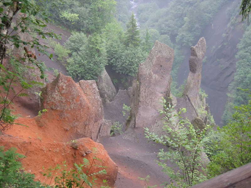 兩岸多數(shù)地帶是坡陡如削的懸崖絕壁,峽谷之中聳立著奇特的熔巖石峰林。