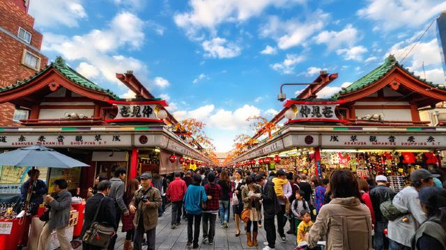 淺草是東京的發(fā)源地。淺草寺是東京最古老的寺廟。也叫淺草雷門觀音寺,該寺正式名稱為金龍山淺草寺。在門的中央有一下垂的巨大燈籠,上面寫著“雷門”二字,已成為淺草的象征。版權(quán)所有山東聊城聊之旅國際旅行社有限公司,轉(zhuǎn)載必究!據(jù)傳公元628年,一對以捕魚為生的兄弟在隅田川中發(fā)現(xiàn)了觀音像,認為是“觀音顯靈”。于是,人們在當?shù)匦藿ㄋ略?,供奉觀音。
