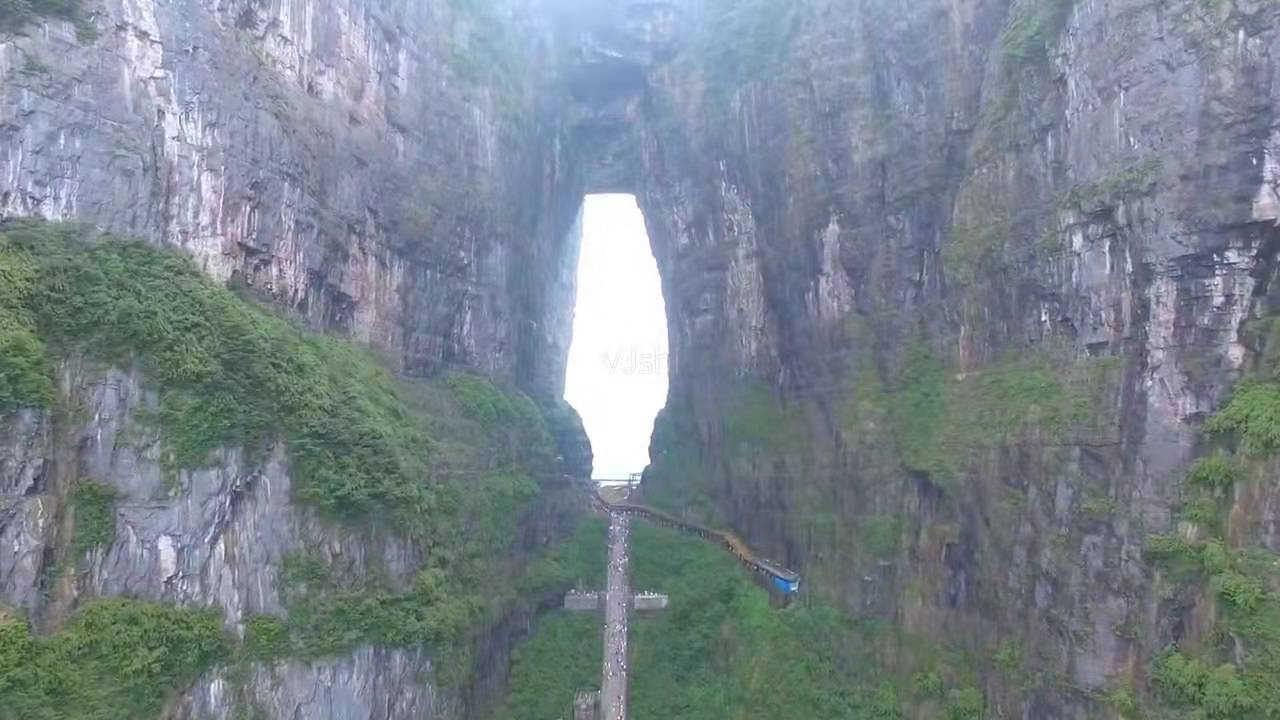 在古老的中國大地上,有一個人間通往仙界桃源的大山,武陵山脈之魂——天門山。您只要從天門山腳登上九百九十九級石階梯,就會到達(dá)通往仙界的大門——天門洞。版權(quán)所有山東聊城聊之旅國際旅行社有限公司,轉(zhuǎn)載必究!碩大的門洞足夠現(xiàn)代人駕駛飛機(jī)穿越而過,是世界上最高的天然溶洞,該天門洞形成的時間比唐僧取經(jīng)時收取的由石頭爆出的大徒弟孫悟空還早500余年(公元263年溶洞形成)。它是天門山中一塊大石塊由于吸聚天地之靈氣噴溥洞開而成。從此,凡人間偉大人物仙逝,該天門山上不管是晴空萬里還是滿天星斗,都瞬間電閃雷鳴,風(fēng)雨交加,猶如天門洞落淚,傾盆而下……淚水沿著絕壁山崖瀑布而瀉,遠(yuǎn)遠(yuǎn)望去,似天上銀河下九洲。這現(xiàn)象至今仍無法開解!