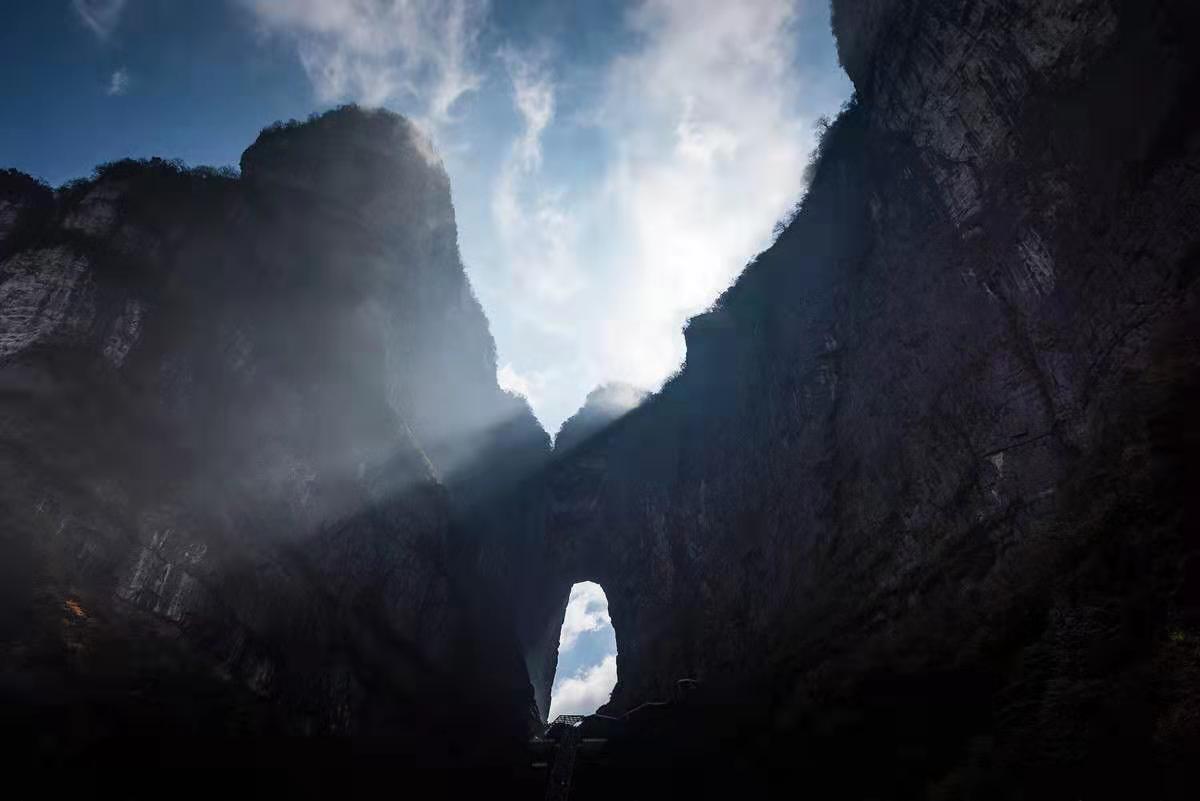 界天門山國家森林公園的天門山主峰,有一個巨大的山洞,這就是舉世聞名的天門洞。