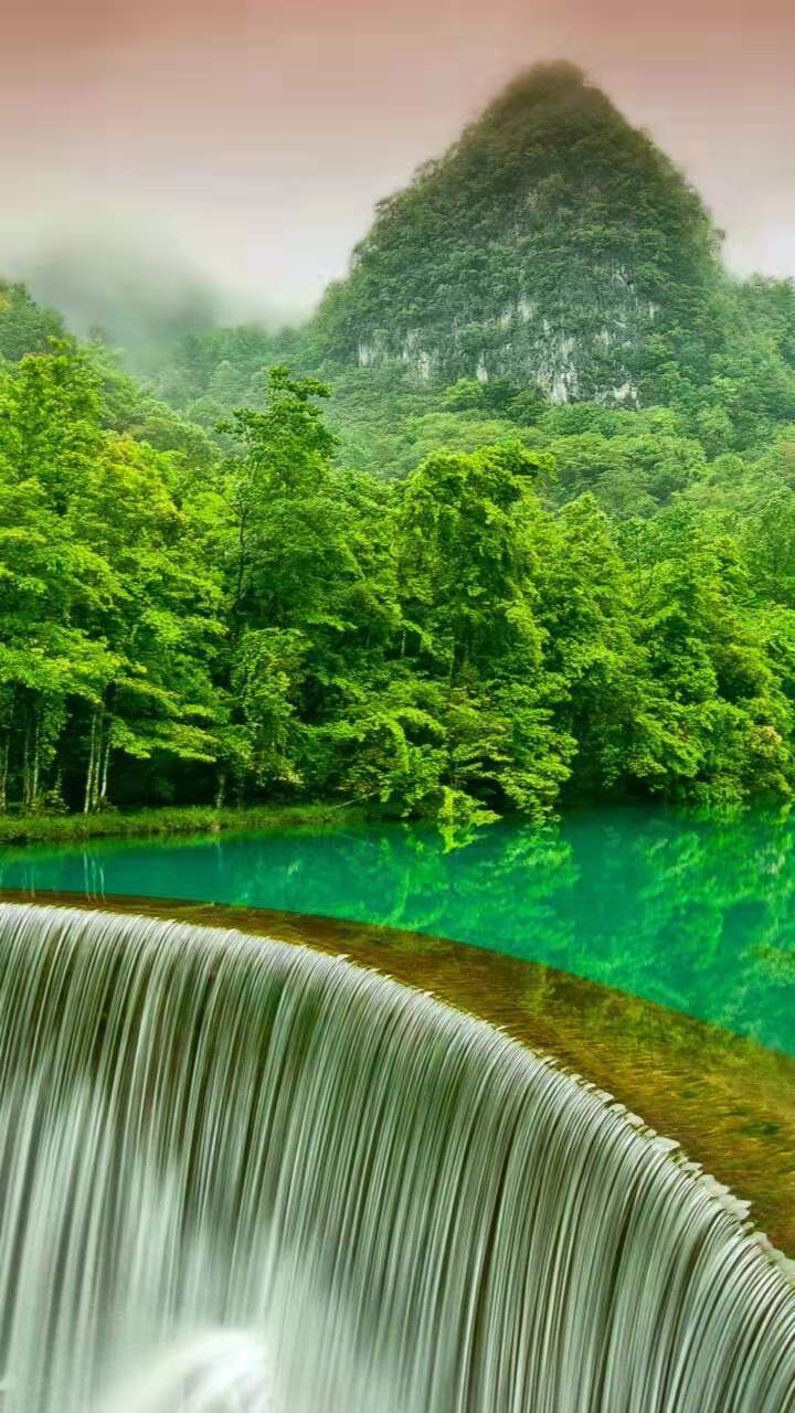 瀑布下方水潭極深,水汽長(zhǎng)年彌漫不散,一經(jīng)陽光折射,一道清麗的彩虹跨其上,故又有“彩虹淵”的美名。下游巨石紛立,是崖