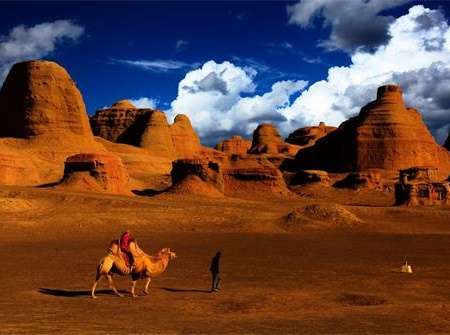 將軍戈壁是一個十分神奇而又迷人的地方,它獨特的地理環(huán)境孕育了獨具特色的自然景觀。這里的天空藍得讓你心醉神怡,這里的空氣新鮮得讓你不忍呼吸。那如烈焰騰空的是火燒山;那如紅氈鋪地的是紅柳的火陣;那綠意如春的是梭梭林。更讓你賞心悅目的是如夢如幻的海市蜃樓,那簡直就是一派仙境。遠遠望去,一泓春水,微波蕩漾,沙丘小樹點綴其間,幻化成亭臺樓閣,虛無飄渺,偶見身影閃動,如閑云野鶴,好不誘人。另外,亞洲最大的硅化木群,轟動全國的恐龍溝,被稱為化石之庫的石錢灘都在這里,和魔鬼城并稱將軍戈壁“四大奇跡”。版權(quán)所有山東聊城聊之旅國際旅行社有限公司,轉(zhuǎn)載必究!那個“城樓”的神奇還在于它隨時間的不同而變幻。當旭日東升,從遠處望去,“城樓”就象一對披著晨光的武士,忠實地守衛(wèi)著城堡的安寧;當黃昏初上,明月當空,那個高一些的就像個戴斗笠的老爺爺講述一個古老而有趣的故事??粗且荒话蚕硖靷惖男腋G閼B(tài),你無論如何也不會把它和魔鬼二字連系在一起。 只有在大風之夜,你才會真正領略到它魔鬼的一面。這里的風往往來的非常突然,有時明月當空,風清月麗,就說不定就會狂風大作,飛沙走石。這時你就會聽到整個魔鬼城一片鬼哭狼嚎,有的聲如洪鐘。若惱若怒;有的細如婦泣,悲悲凄凄;還有的尖聲怪叫,讓人毛骨悚然。當你孤身大漠,置身風高月黑之夜,聽到這些令人心驚心膽戰(zhàn)的聲音,你絕對會有一種身置魔域的感覺。然而,當?shù)诙煨袢諙|升,再看晨光下的魔鬼城,竟是那么溫順,那么安靜,大風之夜的恐懼就像一場夢,你會感到一種從未有過的新奇和刺激。
