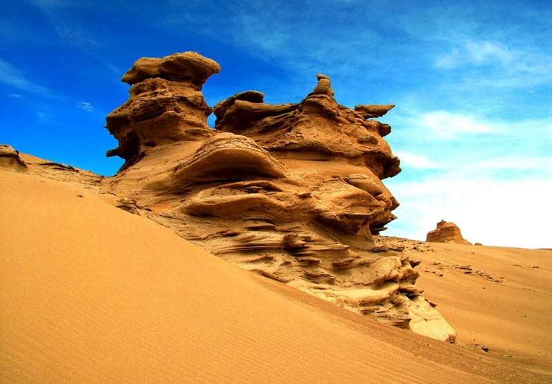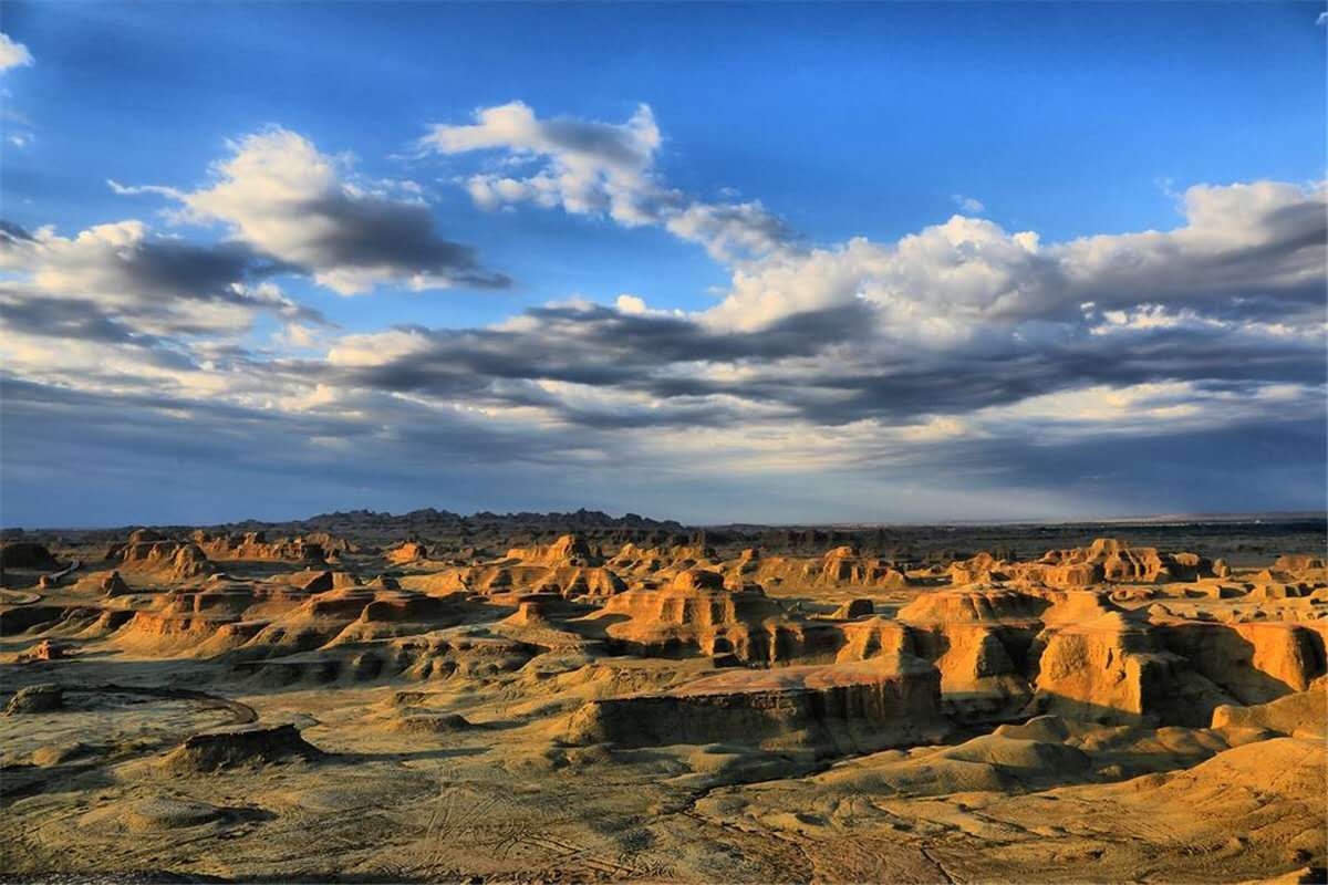 1.2萬年以來的全新世,在洪流和強風的作用下原來平坦的盆地被慢慢沖刷剝蝕。風和流水可以帶走疏松的沙土層,對堅硬的泥巖層和石膏膠結(jié)層卻作用有限。版權(quán)所有山東聊城聊之旅國際旅行社有限公司,轉(zhuǎn)載必究!不過致密的泥巖層也并非堅不可摧,荒漠區(qū)變化劇烈的溫差產(chǎn)生的脹縮效應導致泥巖層最終發(fā)生崩裂,暴露出來的沙土層被風和流水帶走,演變?yōu)榘疾蹱?;依然有泥巖層覆蓋的部分相對穩(wěn)固,形成或大或小的長條形土墩,這種奇特的地貌形態(tài)逐漸凸現(xiàn)出來。