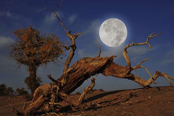 胡楊是樹木中起源最早的類群,被稱之為植物的“活化石”,一棵胡楊的主根,可以穿越地層一百多米,“生而不死一千年,死而不倒一千年,倒而不朽一千年”。