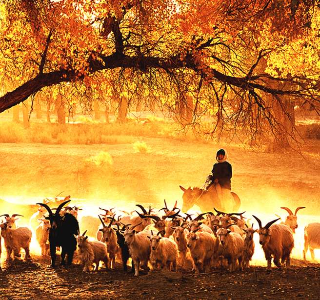 化的植物,大多是野生,被人們譽為“沙漠勇士”。胡楊林是一種神奇的群體,它們耐寒、耐熱、耐堿、耐澇、耐干旱。胡楊生長期漫長,由于風(fēng)沙和干旱的影響,很多胡楊樹造型奇特、詭異,是一種神奇的自然景觀和獨特的人文景觀,堪稱大漠中的一顆綠色明珠,所以胡楊樹有“活三千年不死,死三千年不倒,倒三千年不朽”之稱。版權(quán)所有山東聊城聊之旅國際旅行社有限公司,轉(zhuǎn)載必究!每年9、10月,當(dāng)?shù)谝粓銮锼?,大片的胡楊林由綠變黃,一眼望去,陽光下金色的樹葉趁著湛藍(lán)的天空于風(fēng)中婆娑起舞,那種強烈的反差,鮮明的影調(diào),亮麗的色彩,足以令任何語言文字顯得蒼白無力。胡楊是中亞地區(qū)唯一適合生長的喬木,它是大自然漫長進化過程中幸存下來的寶貴物種。它嫵媚的風(fēng)姿、倔強的性格、多舛的命運激發(fā)人類太多的詩情與哲思。古往今來,胡楊已經(jīng)成為一種精神而被人們所膜拜。