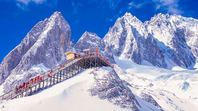 冰川公園處于云南麗江市區(qū)北面32公里,玉龍雪山上,玉龍雪山主