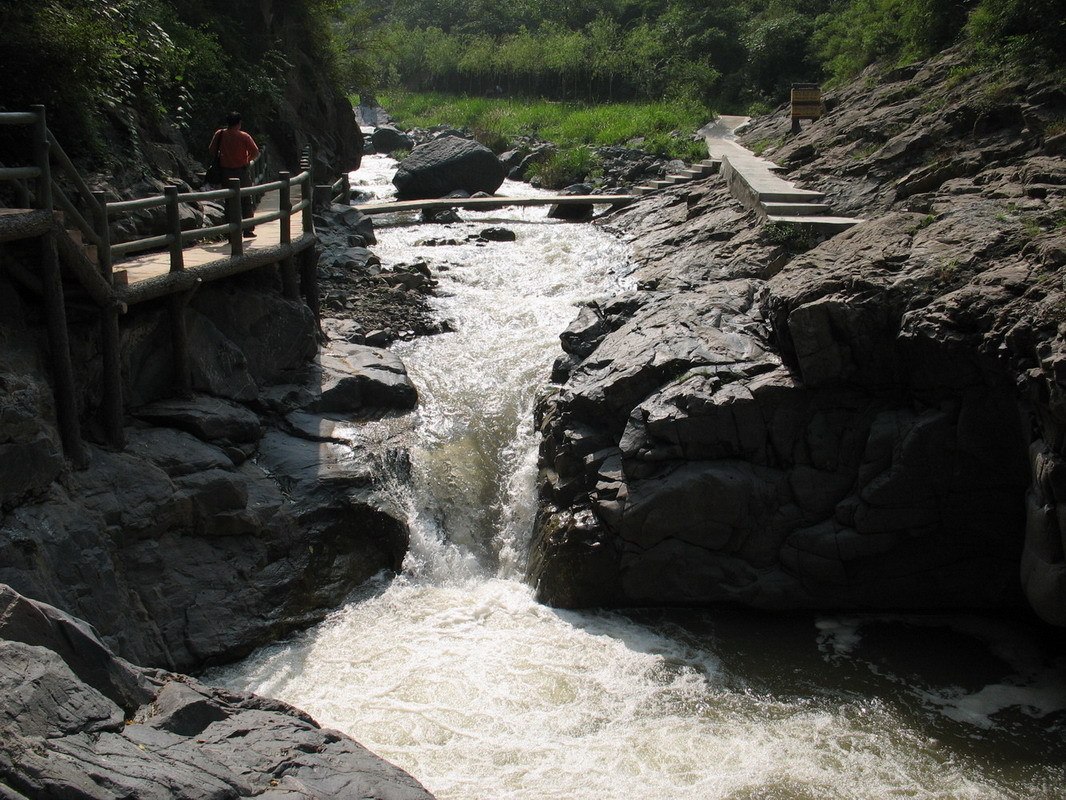 豫西大峽谷風(fēng)景區(qū),位于豫、秦、晉三省結(jié)合部的三門峽市盧氏縣官道口鎮(zhèn)境內(nèi)。峽谷呈東西走向,象一條由西向東延展的飄帶,由大大小小99級(jí)瀑布及300多個(gè)潭池組成。每當(dāng)汛期來(lái)臨,潭上飛珠濺玉,霧氣騰騰,聲響如雷,氣勢(shì)磅礴;風(fēng)和日麗時(shí)節(jié),瀑布則如白練懸空皎美絕倫。