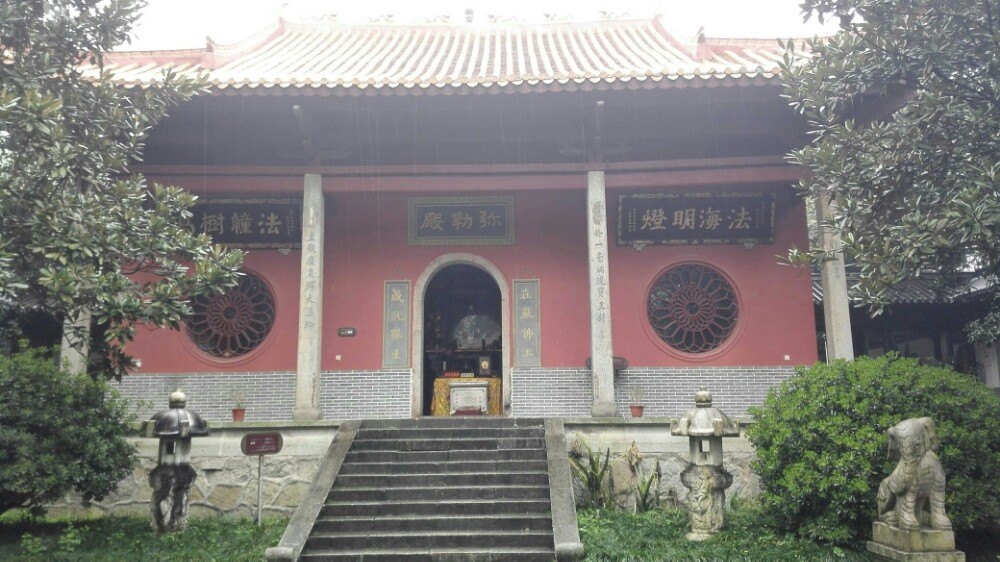 唐代大詩人杜甫曾用“寺門高開洞庭野,殿腳插入赤沙湖”的詩句稱頌殿宇宏大。大雄寶殿等主要建筑,于1944年被炸毀,僅存山門和觀音閣,現(xiàn)已修整一新.山門上有“古麓山寺” 的橫額,兩旁為“漢魏最初名勝,湖湘第一道場(chǎng)"對(duì)聯(lián),門外古楓參天,濃蔭覆蓋,門內(nèi)園圃百花爭(zhēng)艷。