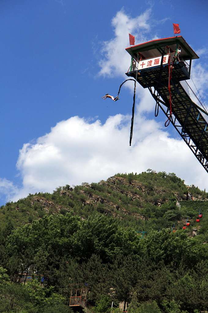 北京拒馬娛樂有限公司開時(shí)尚風(fēng)氣之先,第一個(gè)將勇敢者的游戲——蹦極跳引入中國(guó),落戶十渡,引發(fā)了全國(guó)范圍內(nèi)的蹦極熱,被譽(yù)為“十渡蹦極,神州第一”,尤其是一處雙臺(tái)蹦極,更是世界第一。。版權(quán)所有山東聊城聊之旅國(guó)際旅行社有限公司,轉(zhuǎn)載必究!迄今為止公司已安全接待勇敢者10萬(wàn)余人次,并于2000年7月12日-14日成功的舉辦了由國(guó)家體育總局、登山運(yùn)動(dòng)管理中心主辦,北京拒馬娛樂有限公司承辦的首屆全國(guó)高臺(tái)蹦極邀請(qǐng)賽,這是迄今為止世界上規(guī)模最大、參賽人數(shù)最多、參賽范圍最廣、比賽層次最高的一次蹦極賽事。