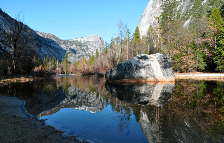 約塞米蒂的巖石會(huì)你從心底感到震撼——你會(huì)真正認(rèn)識(shí)到自然的鬼斧神工。光滑花崗巖最完美的部分分布在海拔2400~2700米的地方,有的方圓達(dá)數(shù)公里,光滑的花崗巖上面只有星星點(diǎn)點(diǎn)的疤痕,那是風(fēng)雨在上面的歲月留痕。保存最完好的部分光彩照人,像平靜的水面和玻璃一樣反射著陽(yáng)光,盡管數(shù)千年來(lái)它們一直暴露在風(fēng)吹雨打之中,但它們每天都像被擦亮了一樣光芒四射。