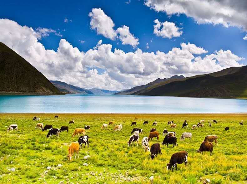 羊卓雍措被譽(yù)為世界上最美麗的水。羊卓雍措,“羊”:上面;“卓”