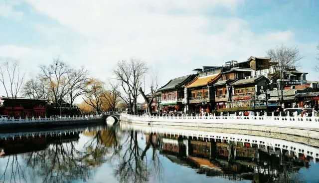 什剎海也寫作“十剎?!薄?位于北京城西北隅,交通十分便利。四周原有十座佛寺,故稱。元代名海子,為一寬而長的水面,明初縮小,后逐漸形成西海﹑后海﹑前海,三海水道相通。自清代起就成為游樂消夏之所。三海碧波蕩漾,岸邊垂柳毿毿,遠山秀色如黛,風光綺麗,為燕京勝景之一。