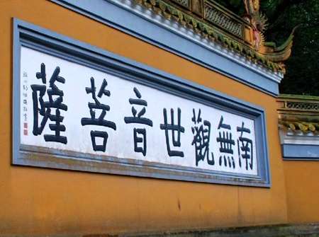 進(jìn)入普濟(jì)寺一般都要經(jīng)過一個(gè)石牌坊,此坊四柱三門,高約20米,柱上橫楣雕刻有精致的云綾和石葫蘆。坊內(nèi)北側(cè),樹一石碑,上書,“文武官員軍民人等到此下馬。”據(jù)說這是皇帝立下的圣旨,過去官吏到此,文官下轎,武官下馬,以示對(duì)觀音菩薩的崇敬。