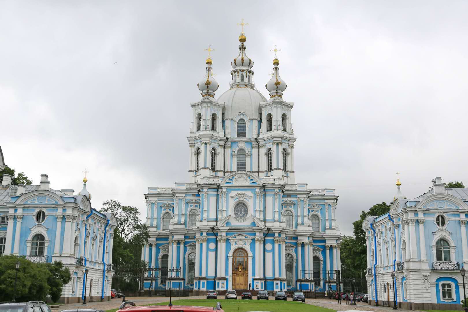 斯莫爾尼宮(Smolny),位于圣彼得堡市的東北部,在涅瓦河轉(zhuǎn)彎的地方,是一座外觀典雅的三層建筑,它建于1806—1808年,原為貴族女子學(xué)院。“斯莫爾尼”一詞來自俄語“瀝青”,初建時這里屬于瀝青廠,在蘇聯(lián)時期作為列寧格勒市政府辦公樓,現(xiàn)為圣彼得堡市政府,從市長到各處、陸軍部、內(nèi)務(wù)部仍在此辦公。斯莫爾尼宮位于圣彼得堡市中心,整體色彩和皇村的葉卡捷琳娜宮的色彩相同,為拜占庭藍(lán)白相間,是巴洛克風(fēng)格和拜占庭風(fēng)格的融合,在圣彼得堡的諸多宮殿里具有相當(dāng)高的代表性。
