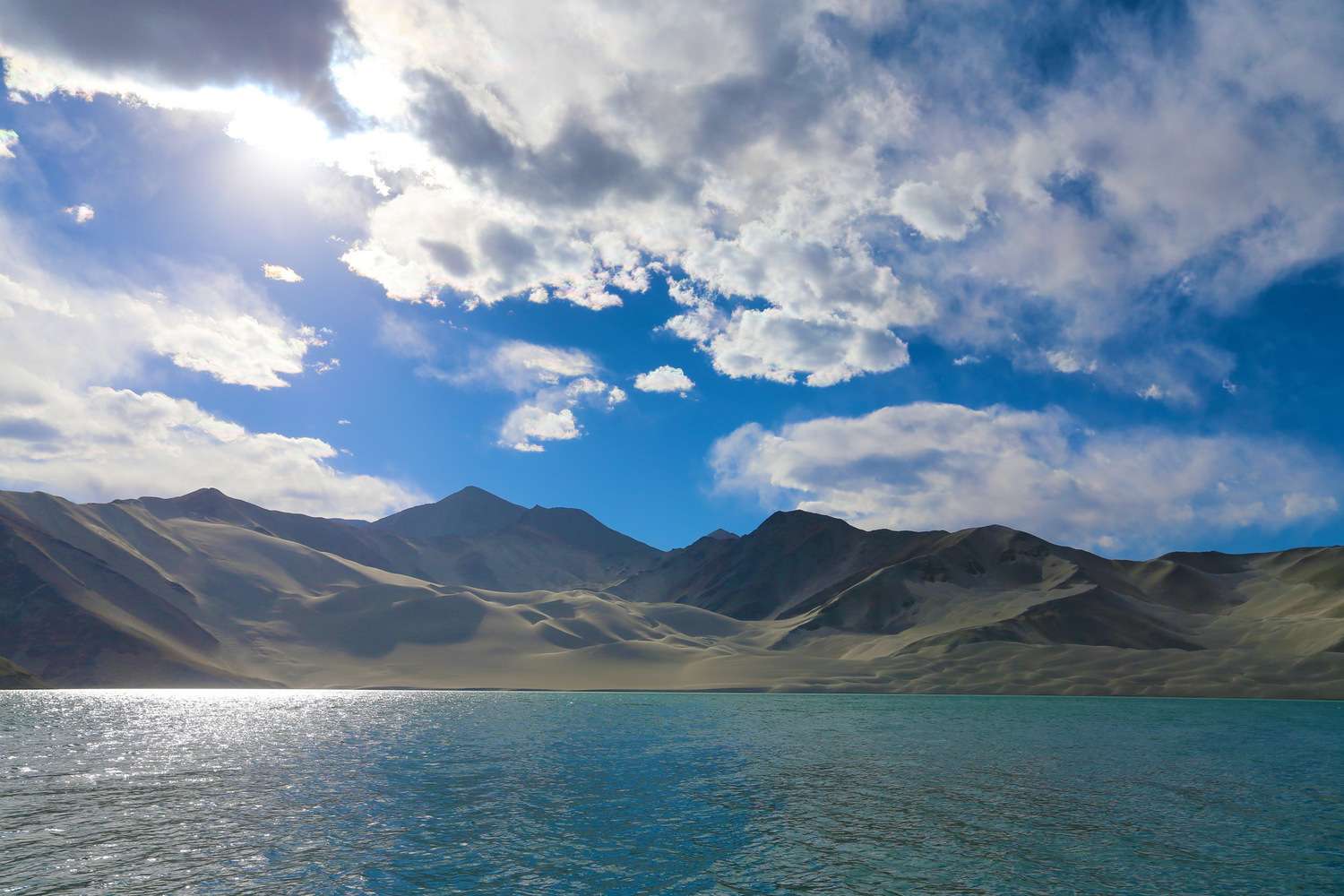 “卡拉庫里”意為“黑?!?,海拔3600米,湖深30米,總面積10平方公里,是一座高山冰蝕冰磧湖。水面映襯著巍峨又神秘的慕士塔格峰,白雪皚皚,山水同色,景色十分迷人。