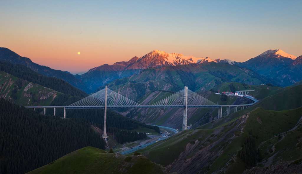 果子溝大橋作為新疆第一座斜拉橋、第一高橋,是新疆最大最重要的橋梁,同時也是全國首座公路鋼桁梁斜拉橋,它集新技術(shù)、新結(jié)構(gòu)、新工藝、新設備“四新”于一身,是新疆公路建設史上一次重大突破。版權(quán)所有山東聊城聊之旅國際旅行社有限公司,轉(zhuǎn)載必究!在新疆首次使用大體積混凝土溫度控制技術(shù)、塔梁異步施工工藝、液壓爬膜、自行式移動模架等國內(nèi)領(lǐng)先技術(shù),為山區(qū)高速公路施工積累了寶貴的經(jīng)驗。