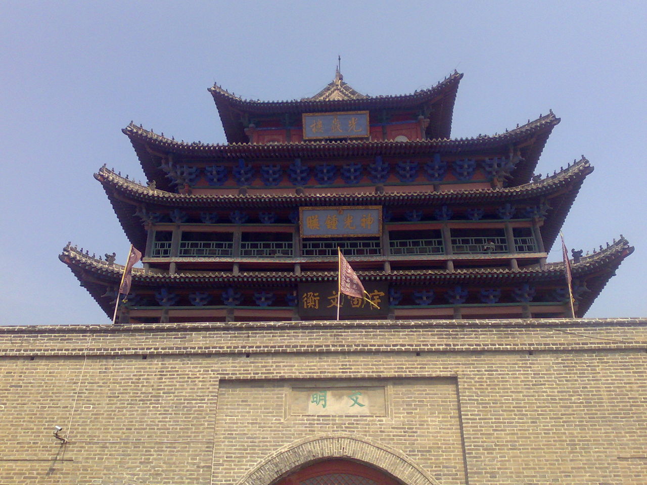 東、西、南面的詞都比較祥和,唯有北面是“武定”,這是由光岳樓的建造背景所決定的。東昌古城四門皆有四匾,東曰:“春熙”,西曰“清遠”,南曰“正德”,北曰“宣威”,對北方都充滿了敵對的信息。