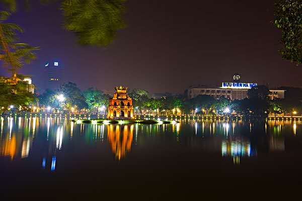 越南語:Hoàn Kiem。越南風(fēng)景區(qū)。是越南首都河內(nèi)眾多大小湖泊中最著名的一個(gè),位于市中心區(qū),南北狹長(zhǎng),呈橢圓形,面積約 12 公頃。過去有水道與東距不遠(yuǎn)的紅河相通,后來被河堤隔斷。
