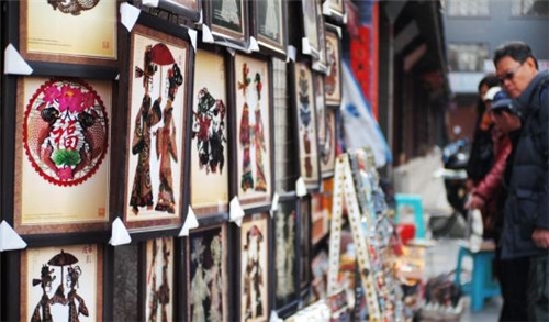 從南大街走到書院門,忽然好像一下子安靜了下來。路兩邊,高大的槐樹后面,紅漆格子門半開著,大大小小的湖筆從門檐上面垂下來,一條浸透墨香的路便向遠(yuǎn)方鋪展開來約570多米,濃郁的古風(fēng)撲面而來。兩邊鱗次櫛比地集中了碑帖拓片、名人字畫、印章印譜、文房四寶等100多家店鋪,在二、三層雕欄樓閣上,掛著一色的黑底金字牌匾,書寫著文萃閣、醉書軒、聚看齋、皓月宮等店名。這里的店鋪門面既不像江南商號(hào)那樣纖巧秀麗,也不同于北京大柵欄那樣富麗堂皇。而是古樸敦厚,門面很少有繁瑣的裝飾,牌匾、楹聯(lián),還有深狹的門道,顯示了一種儒雅祥瑞、深藏若虛的氛圍。商家所售的商品有各種旅游紀(jì)念品、工藝品等。然而墨香的古文化街最能體現(xiàn)特色的商品當(dāng)屬種類繁多的文房四寶、書法字幅、國(guó)畫卷軸、碑帖拓片、藍(lán)田美玉以及古老的樂器“塤”。