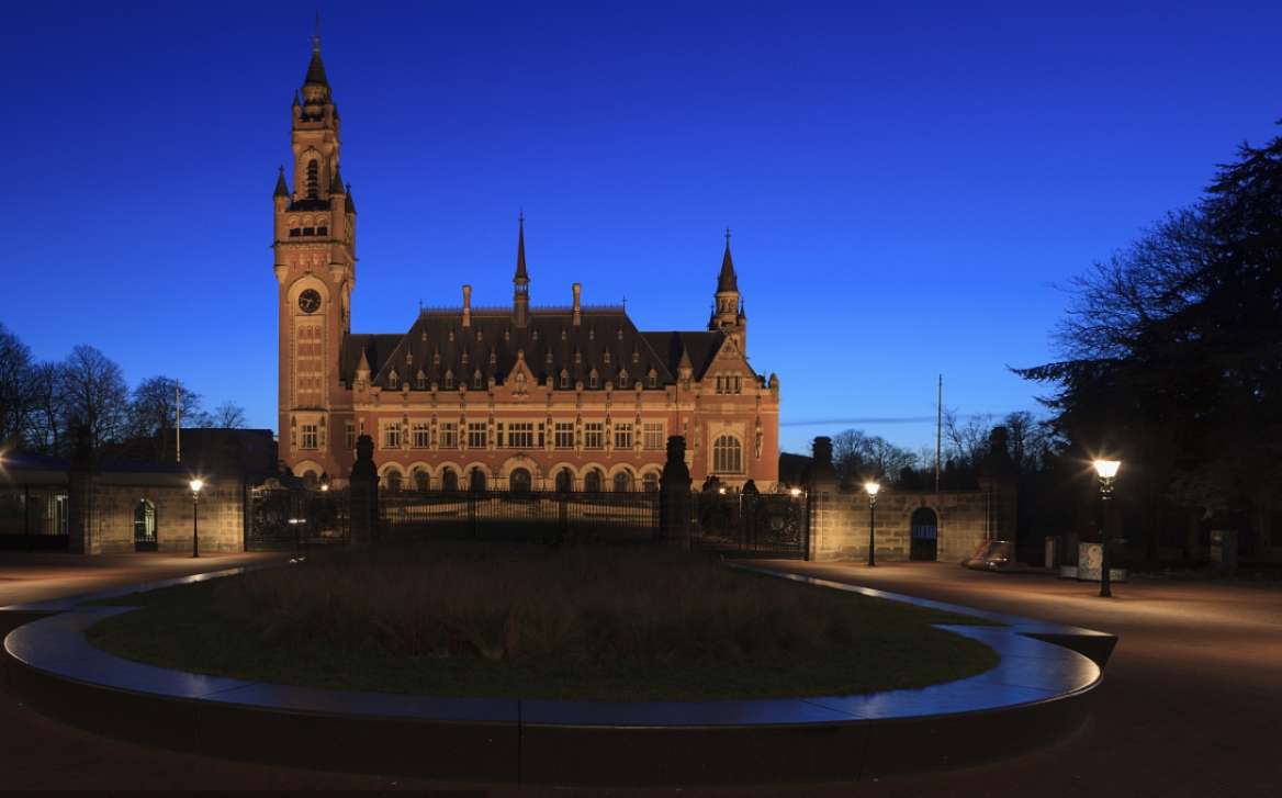 和平宮是一座棕紅色的宮殿式建筑,兩層,帶有兩座尖聳的高塔。和平宮正面是由 9個大拱門組成的走廊,西邊聳立的鐘塔是附近最高的建筑物。底層的拱頂大廳全部采用大理石修建,并飾以金色浮雕,地面由乳白色和淺藍(lán)色大理石組成圖案。在大廳中間的主樓道正中,坐落著一尊美國贈送的司法女神石雕,背襯用彩色玻璃鑲嵌而成的 3 扇落地窗。樓下兩側(cè)有一個大法庭和兩個小法庭。走廊里陳列著各國贈送的禮品,其中有一個中國贈送的比人還高的、紅木底座的景泰藍(lán)花瓶。大法庭正面中間為法庭席,后面排列著十余把高背椅,這是法官和助手的席位。審理重大案件時,全體法官都出庭。法庭內(nèi)有 100多個座位,供公眾與記者旁聽。而一樓的兩個小法庭都只有 4個法官的座位,主要處理一般性糾紛和預(yù)審。二樓有法官會議室和辦公室,其中名為“日本室”的會議室,全部陳列和布置都由日本捐獻(xiàn)。和平宮建成后的第二年,就爆發(fā)了第一次世界大戰(zhàn),戰(zhàn)后成立的國際聯(lián)盟,在這里設(shè)立了國際司法常設(shè)法庭。它與原來的國際仲裁法庭都是國際聯(lián)盟下屬的司法機構(gòu)。二次大戰(zhàn)后,這兩個法庭改名為國際法院,成為聯(lián)合國的司法機構(gòu)。聯(lián)合國的會員國都是國際法院的成員。和平宮內(nèi)的國際法圖書館是一家公共圖書館,它是世界上最大的收藏法學(xué)書籍的圖書館。