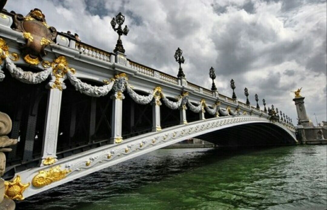 亞利山大三世橋坐落在風(fēng)光明媚的法國巴黎塞納河上,于1896 年10 月7日由沙皇尼古拉二世和當(dāng)時(shí)的法國總統(tǒng)佛朗索瓦 - 薩利 - 福爾奠基,于1900年巴黎世博會(huì)時(shí)完工。為不影響兩岸景觀,橋的拱起弧度壓得很低。整個(gè)大橋雍容華貴,金碧輝煌。它是由俄國沙皇尼古拉二世作為法俄親善的禮物,捐贈(zèng)給法國的,并以尼古拉二世的父親亞歷山大三世名字命名。大橋?qū)砂兜?/span>香榭麗舍與巴黎榮軍院廣場連接起來。橋上的燈具由小愛神托著,寓意性的海長形象構(gòu)成大橋裝飾的主題。左岸兩座立柱上,有代表文藝復(fù)興時(shí)期與路易十四時(shí)期的法國標(biāo)志。右岸兩座立柱上,有象征古代法蘭西和現(xiàn)代法蘭西的標(biāo)志。