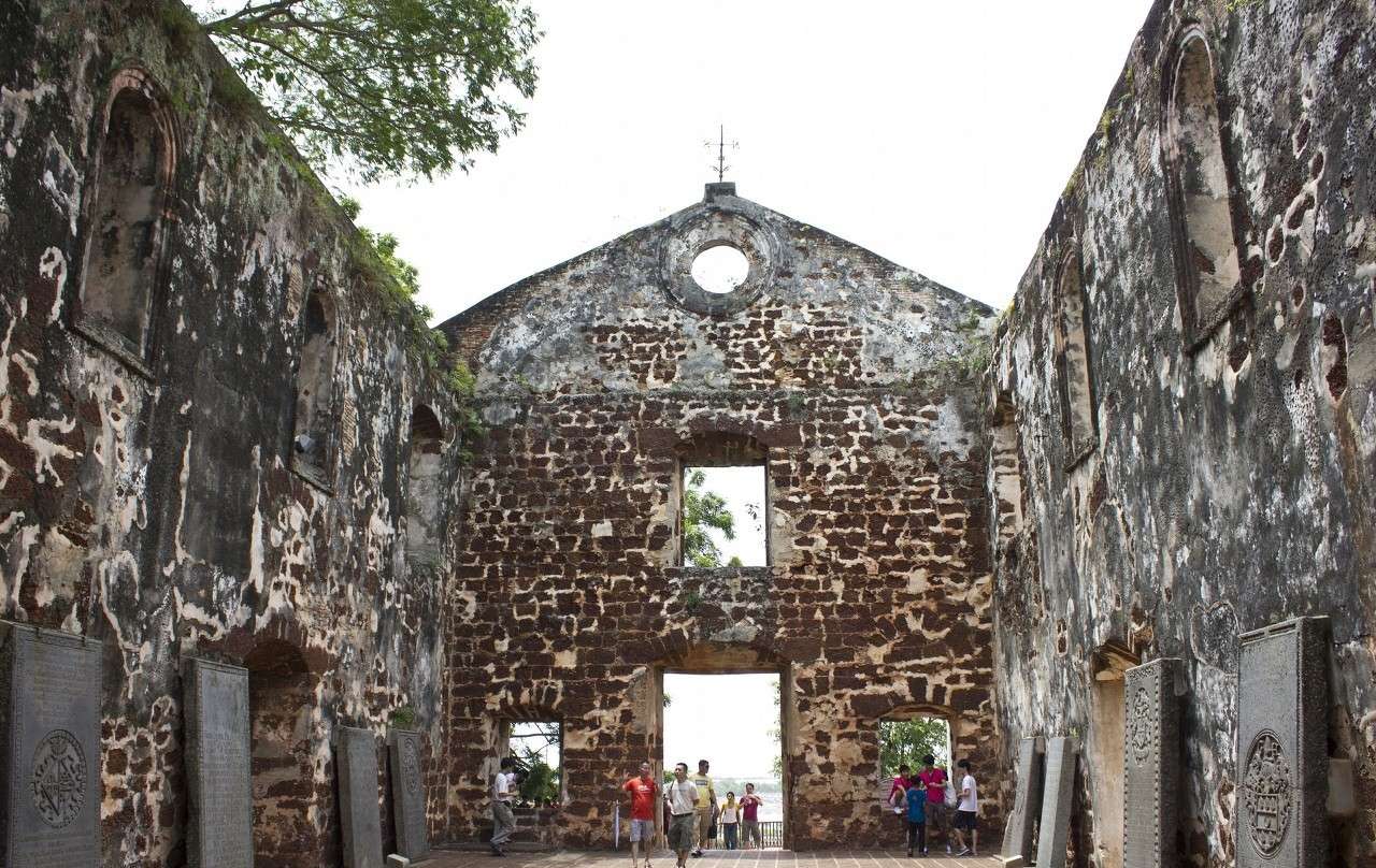 圣保羅教堂位于馬六甲河口的升旗山(又名西山,滿刺加國王拜里迷蘇拉曾將明成祖贈送的金龍文箋在山上勒石樹碑,后改名為圣保羅山),建于1521年,為葡萄牙人所建。著名傳教士圣方濟(jì)各埋葬于此,教堂前豎有圣芳濟(jì)各神父塑像。