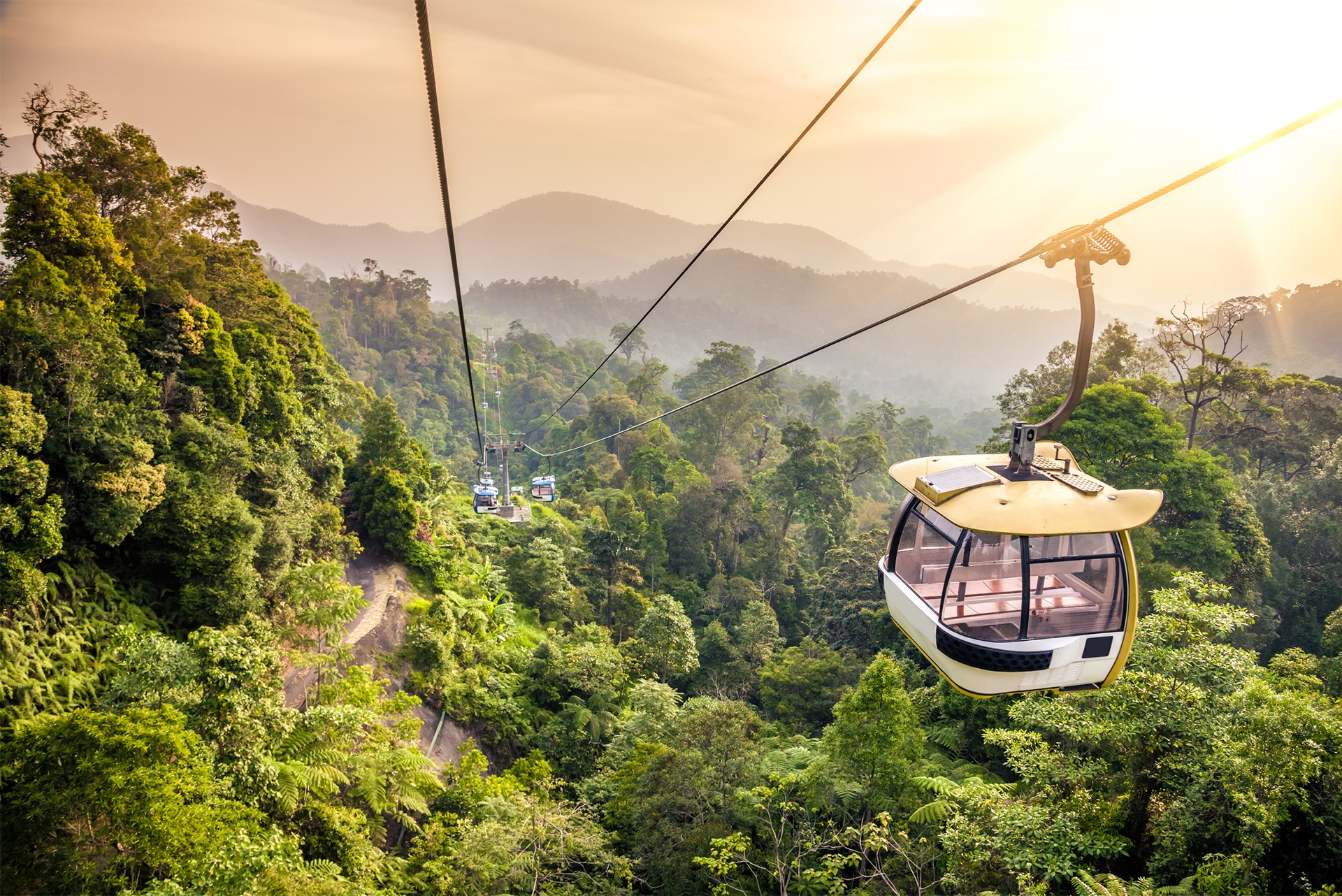 云頂纜車從位于梧桐再也的云頂纜車站出發(fā),直達美星酒店。云頂纜車由馬來西亞第四任首相拿督斯里馬哈蒂爾·本·穆罕默德醫(yī)生于1997年2月21日主持開幕。云頂纜車以每8人一車廂并在一小時內(nèi)載送2000名乘客上山。它的極速為每秒6公尺,只需大約15分鐘便能完成3.38公里長的登山路程。隨著纜車的緩緩上升,馬來西亞特有的奇花異草,以及各種只有熱帶才有的植物、動物和鳥類躍然眼前。往往纜車坐到半山腰就能看到云霧繚繞,如入仙境,到了山頂,室外也經(jīng)常是云里霧里,看來“云頂”這個名字確實也是有點說法的。