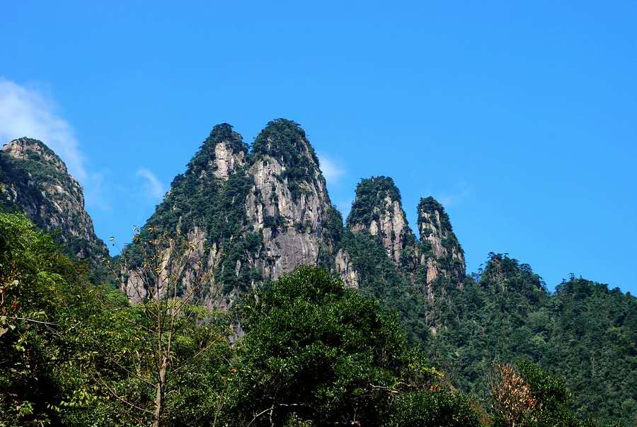 五指峰(井岡山主峰杜鵑山)山峰并列如五指,因而得名,位距茨坪西南六公里,海拔1586米。是井岡山的象征。井岡山革命根據(jù)地紀(jì)念章和一百元人民幣背面主景,就是以她的模樣繪制而成的,故有中國最值錢的山峰之稱,有人說到此一游必將帶來滾滾之財(cái)源。這里山高林密,地域?qū)掗?。山洞遍野,回旋余地大,是歷來兵家藏龍伏虎之地。