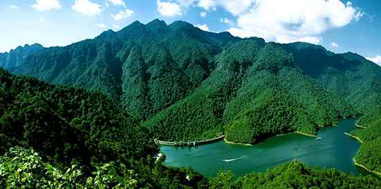 井岡湖(群巒湖)是一座攔江筑起的人工湖,塊石漿砌的雙曲拱壩,高92米,稱之為中國吉尼斯紀(jì)錄。湖面62萬平方米,蓄水1870萬立方。從南湖上船,經(jīng)中湖,泛舟穿林,可駛向西湖和北湖,全長5.3公里。整個(gè)湖周圍,林木密密層層,盤根虬枝,濃蔭如蓋。湖北的峽谷,長2500米。形成一根巨大的扁擔(dān),稱之為“扁擔(dān)崖”。崖頂端奇峰怪石,有幾株臺(tái)灣松點(diǎn)綴著,青云繞繞,婀娜多姿,活像一幅與天相銜的中國國畫。從主峰大壩碼頭上游輪,可游覽井岡湖,至水口石門碼頭上岸,又可游覽水口各景點(diǎn)。