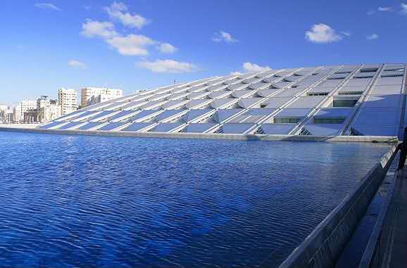 1995年后重建了亞歷山大圖書館,占地4萬平方米,它不僅是埃及的重點(diǎn)建筑項(xiàng)目,也是聯(lián)合國教科文組織在世界范圍內(nèi)的重大科研和建筑項(xiàng)目,它的造型是從77個(gè)國家的設(shè)計(jì)中優(yōu)選的