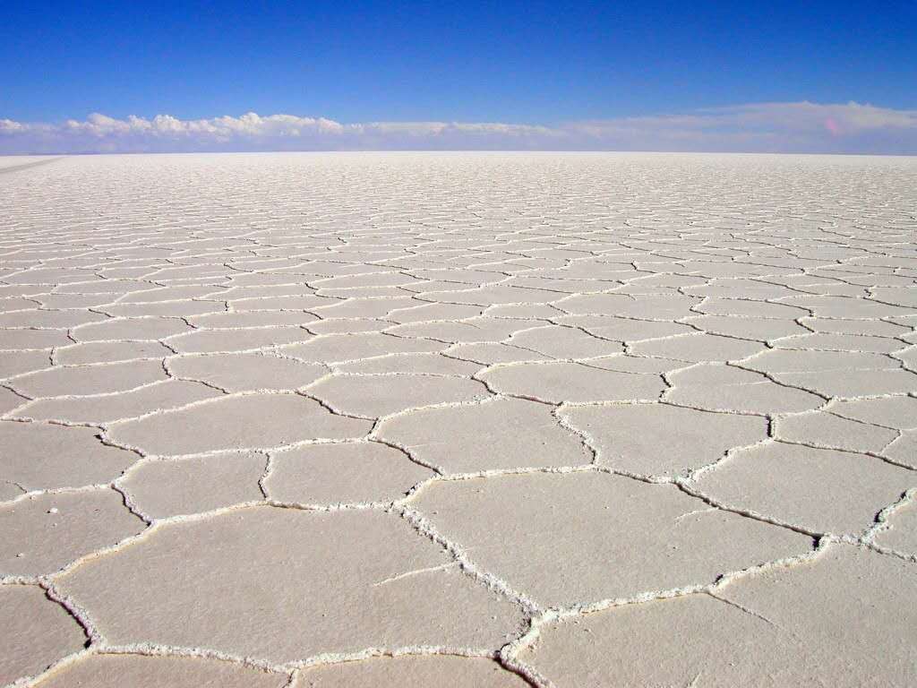 在高原南端有一些冰川融化時留下的鹽湖,而在1萬年前最后一個冰期(第四紀冰期)結(jié)束時,湖水已逐漸消失。高原上最大并最令人印象深刻的就是烏尤尼鹽沼(Salar de Uyuni)。每年夏季(雨季12月至次年1月),它被雨水注滿,形成一個淺湖;而每年冬季(旱季7月至10月),湖水則干涸,留下一層以鹽為主的礦物質(zhì)硬殼,中部達6米厚。人們可以駕車駛過湖面。尤其是在雨后,湖面像鏡子一樣,反射著好似不是地球上的、美麗的令人窒息的天空景色,這也就是傳說中的“天空之鏡”。由于面積空曠,極其光滑(覆蓋著淺水),同時又極平整(海拔差異極?。?,地表反射率極高,使阿塔卡瑪成為一個理想的測試和校準地球遙感衛(wèi)星之地。