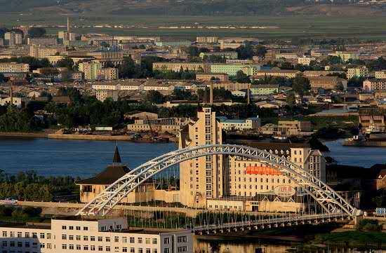 以長(zhǎng)約0.9公里的鐵路公路兩用橋——鴨綠江大橋與與中華人民共和國(guó)遼寧省丹東市相連。新義州-平壤-咸興-羅先電氣化鐵路的起點(diǎn),中朝國(guó)聯(lián)鐵路朝鮮段的第一個(gè)車(chē)站。版權(quán)所有山東聊城聊之旅國(guó)際旅行社有限公司,轉(zhuǎn)載必究!新義州設(shè)有一個(gè)1.2公里跑道的軍民兩用航空站(SII);亦可經(jīng)由中華人民共和國(guó)遼寧省丹東市的浪頭機(jī)場(chǎng)(DDG)前往。