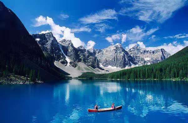 它以風(fēng)姿卓約的維多利亞山為屏障,山水相依,形成一幅完美的風(fēng)景照。露易絲湖被譽(yù)為“落基山脈上的藍(lán)寶石”,這里也是北美最受攝影師青睞的湖泊。露易絲湖源自維多利亞冰川,湖水碧綠清澈,遠(yuǎn)望就像鑲嵌在落基山脈中的一顆翡翠。