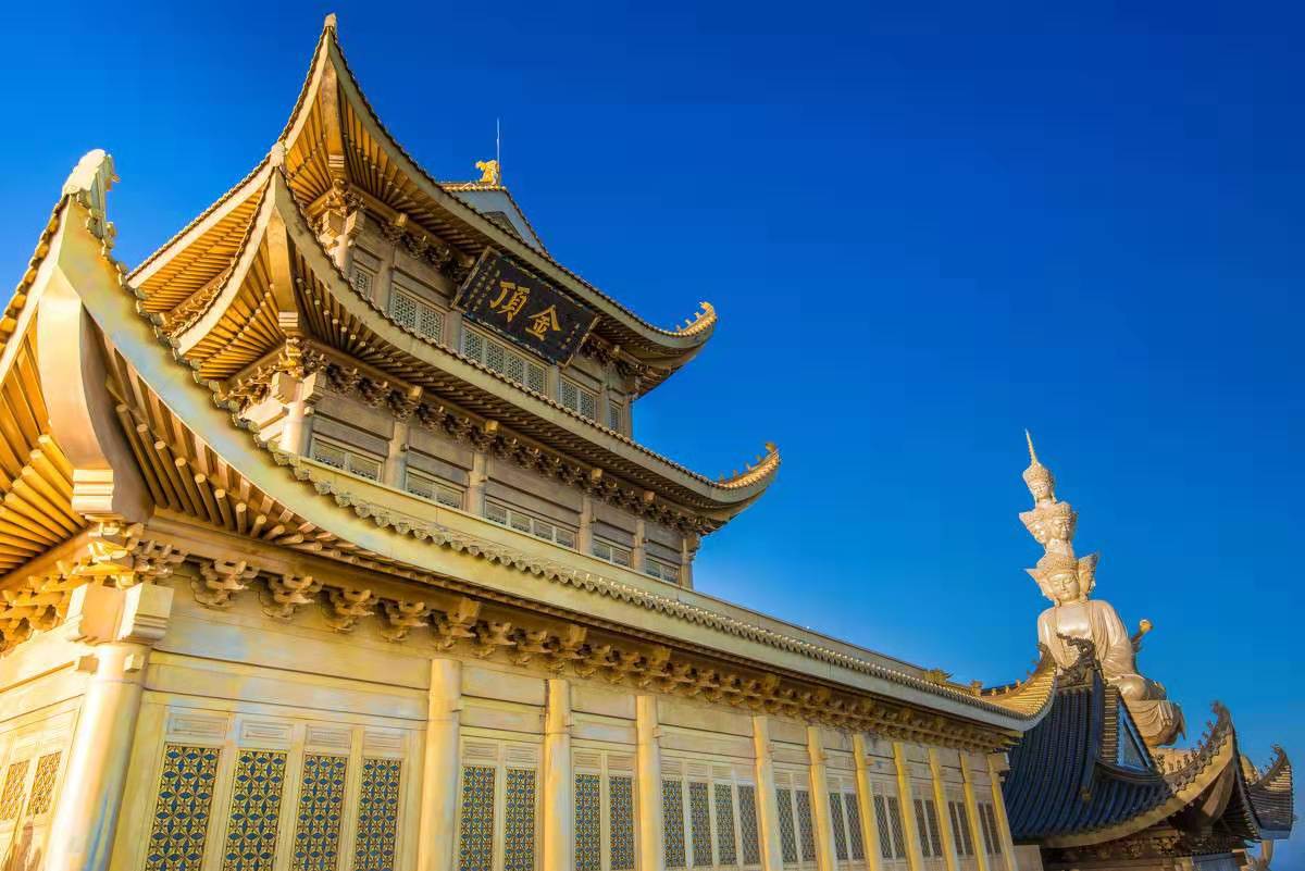 金頂是峨眉山寺廟和景點(diǎn)最集中的地方,高26米、總面積1614平方米的金頂及銅殿各一座,以及第一山亭“銅亭”一座,為峨眉精華所在。1983年被列為漢族地區(qū)佛教全國重點(diǎn)寺院。峨眉山金頂和第一山亭均為中國銅工藝大師朱炳仁領(lǐng)銜的杭州金星銅集團(tuán)公司設(shè)計(jì)建造而成。