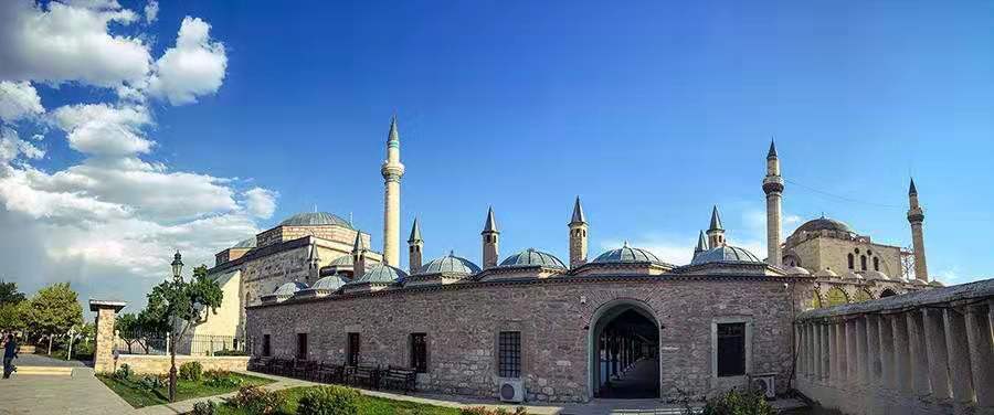 梅烏拉那博物館由清真寺改成,是孔亞人的虔誠(chéng)圣地,每日前往參拜的當(dāng)?shù)厝?,無(wú)不圍繞在梅拉那父子陵墓前念念有辭,用黃金刺繡的絲絨覆蓋著的梅拉那父子,是孔亞人最尊敬的人。而在這龐大的清真寺建筑群中,高高低低蓋碗般的屋頂上,突出一個(gè)綠色的高聳尖塔,氣勢(shì)非凡。