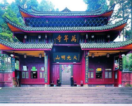 創(chuàng)建于東晉,時(shí)名普賢寺,唐僖宗時(shí)慧通禪師重建,更名白水寺;宋代易名白水普賢寺;明代神宗皇帝朱翊鈞御題“圣壽萬(wàn)年寺”,簡(jiǎn)稱萬(wàn)年寺,為峨眉山最早的六大古寺之一。