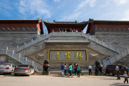 殊像寺為典型漢式寺廟,東西l15米,南北約200米,占地面積2.7公頃。采用庭園布局手法,大規(guī)模疊砌假山,散植松樹,創(chuàng)造了自己的獨(dú)特風(fēng)格。
