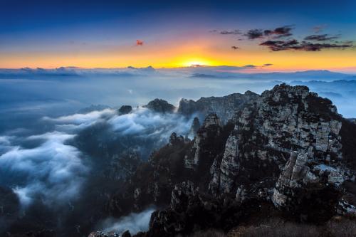 白石山位于太行山的最北端,最高峰佛光頂海拔2096米,登臨其頂可以遠(yuǎn)眺狼牙山和五臺山。白石山景觀多樣,集峰林、怪石、絕壁、峽谷、瀑布、森林、云海、佛光、長城、廟觀等景觀于一體,地貌奇特,結(jié)構(gòu)復(fù)雜,是中國古代“三十六洞天福地”之一。