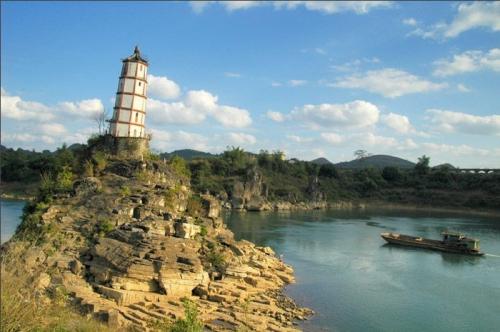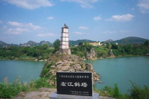 歸龍斜塔:又稱(chēng)左江斜塔和水寶塔,位于廣西崇左市郊東北二公里處,建在左江中的石頭島——熬頭峰上,處于急灣激流之中,地勢(shì)驚險(xiǎn)。