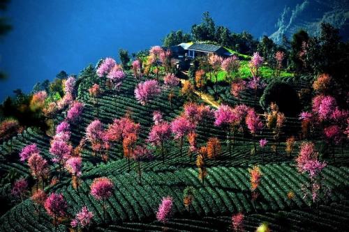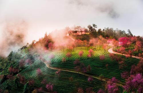 無量山櫻花谷,位于云南大理州南澗縣無量鎮(zhèn)德安村委會(huì)境內(nèi),在云南大理華慶茶業(yè)有限公司的茶莊園內(nèi),與靈寶山國(guó)家森林公園相鄰,距離縣城51公里。北緯24°45' 50" 東經(jīng) 100°30' 32" ,海拔2175米?;ㄆ诿磕?1月底至12月初,25天左右,櫻花谷面積約2000畝。