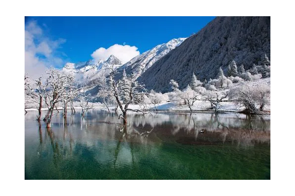 是雙橋溝境內最具特色的山之一,距離雙橋溝溝口約8千米左右,海拔4800米。遠眺過去,像半輪剛剛升起的下玄月,冰雪覆蓋在山上,仿佛清輝閃動;又如一顆被砍伐后的千年古樹,圈圈年輪清晰可見。近看五色山,巨大的山體鑲嵌著五條長約1千米的赤、黃、青、藍、白五色組成的巨大半圓弧巖層,色彩排列極為規(guī)則。圓弧依次而上,大約近30余層。據說夏天,白雪融化,巖石裸露,陽光下照在下面,反射出五道淡淡光暈,像一道美麗的彩虹,架設在湛藍的天空,又像臧家少女脖子上掛的五光十色的瑪瑙項鏈,美麗異常。