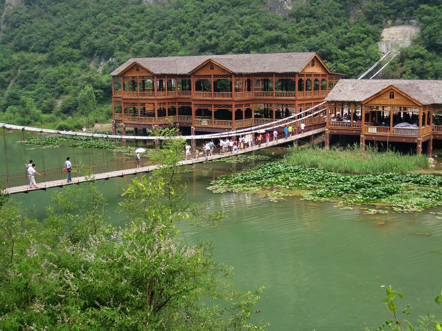 青天河之水天上來,這里三步一泉,五步一瀑,青山繞碧水,綠樹掩古寺,飛泉流瀑,如詩如畫。有世界獨(dú)一無二的天然長城及世界奇觀石雞下蛋;有中原獨(dú)一無二的高山峽谷濕地景色;有最大出水量每秒7立方米、洞徑2.18米的“華夏第一泉”三姑泉及由此泉水形成的長達(dá)7.5公 里的大泉湖。這里碧波蕩漾,嫵媚婉約,水隨山勢,百轉(zhuǎn)千回;野鴨隨水勢,掠過水面,水天一色;兩岸綠色掩映,獼猴嬉戲其中,湖內(nèi)行船蕩舟,舟移景異,船在畫中走,人在畫中游,如游漓江,似進(jìn)三峽,置身其中,您將從生活壓力中解放出來,得到最暢快最松弛的休閑。進(jìn)入西峽,兩岸青峰翠嶺,水面一平如鏡,楊柳臨溪傍水,荊林神韻通幽,古樸小舟伴著暮歸的老牛和牧童,一片田園牧歌式的風(fēng)光呈現(xiàn)在眼前。而游程中,產(chǎn)生于7000萬年前至今唯一身上有文字記載的世界罕見天然大佛、距今1500年的北魏摩崖石刻、北魏官道等人文景觀,會使你在這靜謐的環(huán)境中返樸歸真,去細(xì)細(xì)地體味和追溯歷史的腳步。