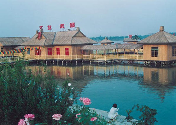 江北水寨位于聊城古城西側(cè),中國垂釣基地南面,整個(gè)水寨采用竹木結(jié)構(gòu),保留本色,全部建筑浮于湖水碧波之上,總建筑面積640余平方米。江北水寨系東昌湖綜合開發(fā)的重點(diǎn)項(xiàng)目之一,在借鑒眾多湖上竹寨建筑風(fēng)格和模式的基礎(chǔ)上,結(jié)合東昌湖自身特點(diǎn),大膽進(jìn)行了調(diào)整和改善,使其布局更加合理,形式更加活潑,功能更加齊全,風(fēng)格更具特色。