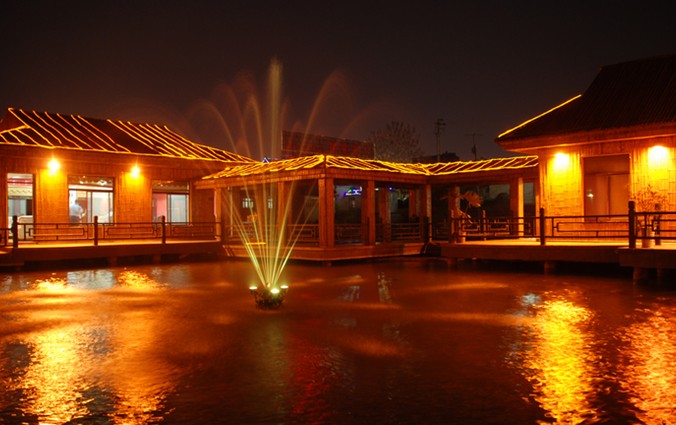 江北水寨系東昌湖綜合開發(fā)的重點(diǎn)項(xiàng)目之一,在借鑒眾多湖上竹寨建筑風(fēng)格和模式的基礎(chǔ)上,結(jié)合東昌湖自身特點(diǎn),大膽進(jìn)行了調(diào)整和改善,使其布局更加合理,形式更加活潑,功能更加齊全,風(fēng)格更具特色。版權(quán)所有山東聊城聊之旅國際旅行社有限公司,轉(zhuǎn)載必究!整個(gè)建筑由棧橋、回廊、亭臺(tái)軒榭組成。內(nèi)置可容70余人的餐會(huì)廳一座,另有10間餐廳、其中5間可供游人作為垂釣包廂,前后門貫通,面湖可放鉤垂釣,大廳與包廂之間棧橋相連,中間為一露天廣廳,可供游客輕歌漫舞。江北水寨樓臺(tái)軒榭,互相映襯,湖光城影,相映成趣,建筑風(fēng)格古樸典雅、錯(cuò)落有致,極具江南水鄉(xiāng)之風(fēng)彩。