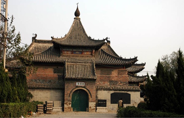 清真寺坐落于臨清市衛(wèi)河?xùn)|岸、先鋒橋畔,俗稱(chēng)北禮拜寺,是一座保存較為完整的古代建筑群。現(xiàn)存更樓、 月臺(tái)、正殿、傳屏、北講堂等大小房屋80余間。正殿前半部為四阿廡殿頂,正脊兩裝有鴟尾, 后部為重檐,結(jié)頂呈山字形。中為八角攢尖頂,后出抱廈,兩側(cè)各掩一四角攢尖頂。坡度比較大, 森然聳峙,錯(cuò)落有致。整組建筑除個(gè)別建筑形式透露著外來(lái)氣息外,基本上屬于當(dāng)?shù)鼗刈褰ㄖL(fēng)格。始建年代無(wú)考,明嘉靖四十三年重修。 1992年,被批準(zhǔn)為省級(jí)保護(hù)單位。