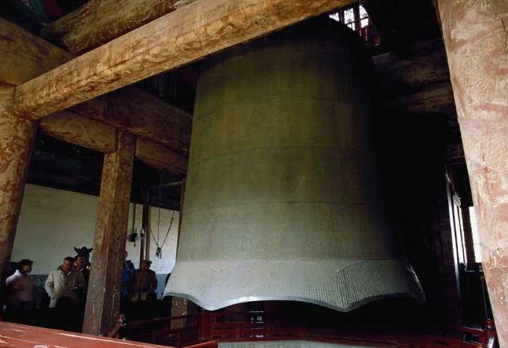 輕擊大鐘,其音圓潤(rùn)、深沉、古雅;重?fù)魟t純厚、洪亮、莊嚴(yán)。內(nèi)行人能辨出1?3?5?Ⅰ等完全諧和音組成的泛音系列。無(wú)論該鐘的音質(zhì)、音色還是傳播距離,在世界古鐘之林中,都名列前茅。