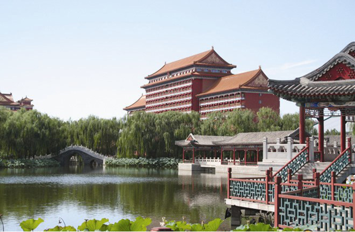 它外仿明清時(shí)期北京都城的城垣風(fēng)貌,采用“縮地不縮景”的方式,按照1:1的比例復(fù)原了老北京“內(nèi)九外七”的城垣格局。由周邊5公里的空腹城墻、22座錯(cuò)落有致的城樓、具有濃郁中國(guó)傳統(tǒng)文化風(fēng)格的建筑群和獨(dú)具匠心的皇家園林組成的景園內(nèi),建有設(shè)施完備的大型現(xiàn)代化國(guó)際會(huì)展中心、五座建筑風(fēng)格各異的星級(jí)酒店;外城東區(qū)為圓明勝景區(qū),樓、臺(tái)、亭、榭體現(xiàn)了中式皇家園林的風(fēng)范;外城西區(qū)以王府、四合院為代表的古城春色區(qū)盡顯六朝古都的宅府風(fēng)貌;前門商業(yè)街坐落在兩區(qū)之間,崇文門的西部為康體健身中心;宣武門被大型的嬉水樂(lè)園所簇?fù)?;古色古香的正安宮大酒店是第一城的標(biāo)志性建筑。中華佛教藝術(shù)博物院、金色藝術(shù)大廳、高爾夫草坪式花園構(gòu)成了第一城千姿百態(tài)的多種畫(huà)卷。版權(quán)所有山東聊城聊之旅國(guó)際旅行社有限公司,轉(zhuǎn)載必究!整體風(fēng)格盡現(xiàn)華夏古今文化之精華、神州民族建筑之異彩,是傳統(tǒng)美學(xué)與現(xiàn)代建筑技術(shù)的完美結(jié)合。